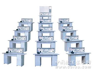 (四) 器材配備: 26臺三相180W電動機,26只時間繼電器,26只熱繼電器,78只交流接觸器,156只交直流電表,13只萬用表,39只指示燈,42只行程開關,78只控制按鈕,13只倒順開關,26只變壓器,13只三相雙投閘刀,13只三相閘刀,13套實驗所需電阻、電位器、電感線圈、互感線圈、二極管、三極管、場效應管、集成、可控硅、邏輯電平開關、邏輯電平指示等元件盒(元件已裝在元件盒內),13套剝線鉗、螺絲刀、尖嘴鉗等工具。