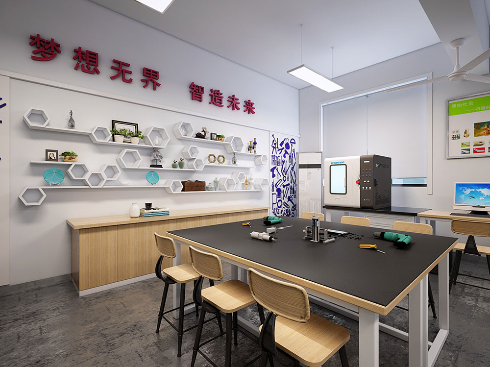設備設施:擁有各種創意組合模型、投影儀和電子白板、電腦及電動工具等設備。