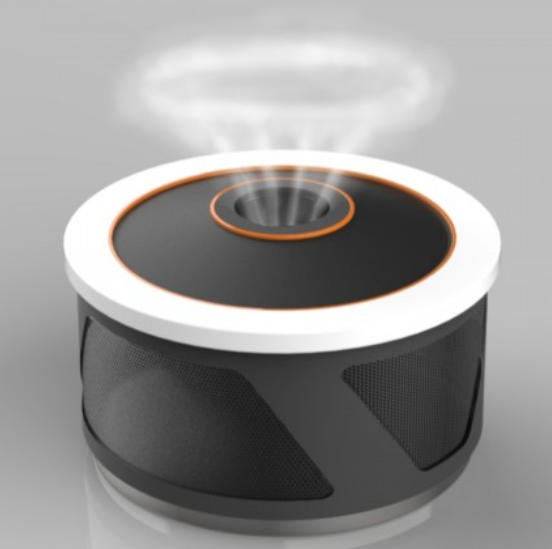 根據(jù)伯努利原理——流動(dòng)的流體壓強(qiáng)降低,周邊壓強(qiáng)高的靜止空氣補(bǔ)充到壓強(qiáng)低的區(qū)域,由此形成渦流。這個(gè)渦流分布在圓孔周邊,成為環(huán)狀,并向前運(yùn)動(dòng)。環(huán)狀的空氣渦流將霧氣水珠限制在一個(gè)環(huán)狀區(qū)域內(nèi)形成煙圈,當(dāng)霧氣水珠隨著空氣快速通過(guò)一個(gè)圓孔時(shí),由于圓孔出口周邊的空氣是靜止的,因此從圓孔中流出的空氣-水珠霧氣混合物會(huì)牽引靜止的周邊空氣,由此形成了一個(gè)從孔洞邊緣向外再轉(zhuǎn)向內(nèi)旋轉(zhuǎn)的一個(gè)渦流。