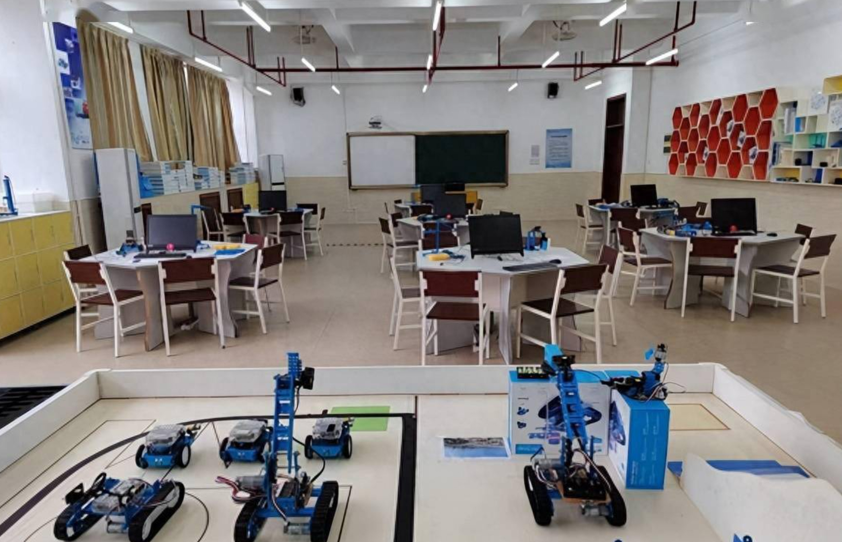 1硬件配置‌:采用模塊化設計,學校可根據需求選擇機器人、編程設備等組件,靈活搭建實驗室。 ‌