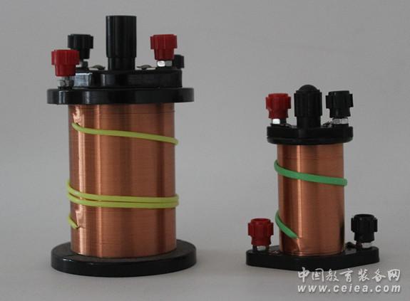 產(chǎn)品由演示原線圈、演示副線圈、軟鐵芯三部分組成。線圈骨架采用酚醛塑料制作,演示原線圈骨架內(nèi)徑13mm,外徑22mm,線圈采用QZ0.59mm高強(qiáng)度漆包線分四層平繞400±8匝,繞線寬度65mm,線圈表面有繞向標(biāo)志;演示副線圈骨架內(nèi)徑35mm,外徑49mm,線圈采用QZ0.27mm高強(qiáng)度漆包線分五層平繞115±20匝,繞向和演示原線圈一致,繞線寬度69mm,線圈表面有繞向標(biāo)志;鐵芯采用直徑12mm的軟鋼棒制作,長度113mm,鐵芯上端裝有塑料手柄。