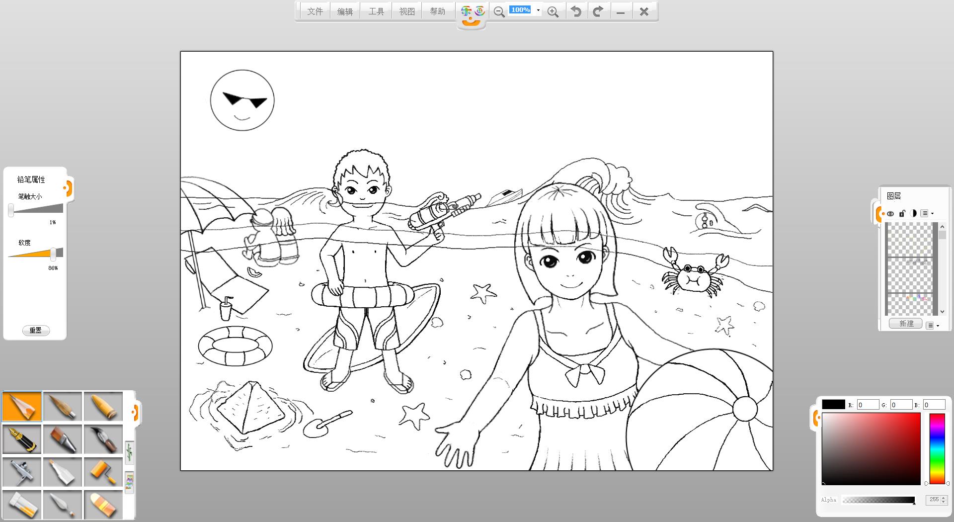 26.一幅“玩轉暑假”的作品創作完成了,如果有時間還可以給人物更換不同的發型和服裝。