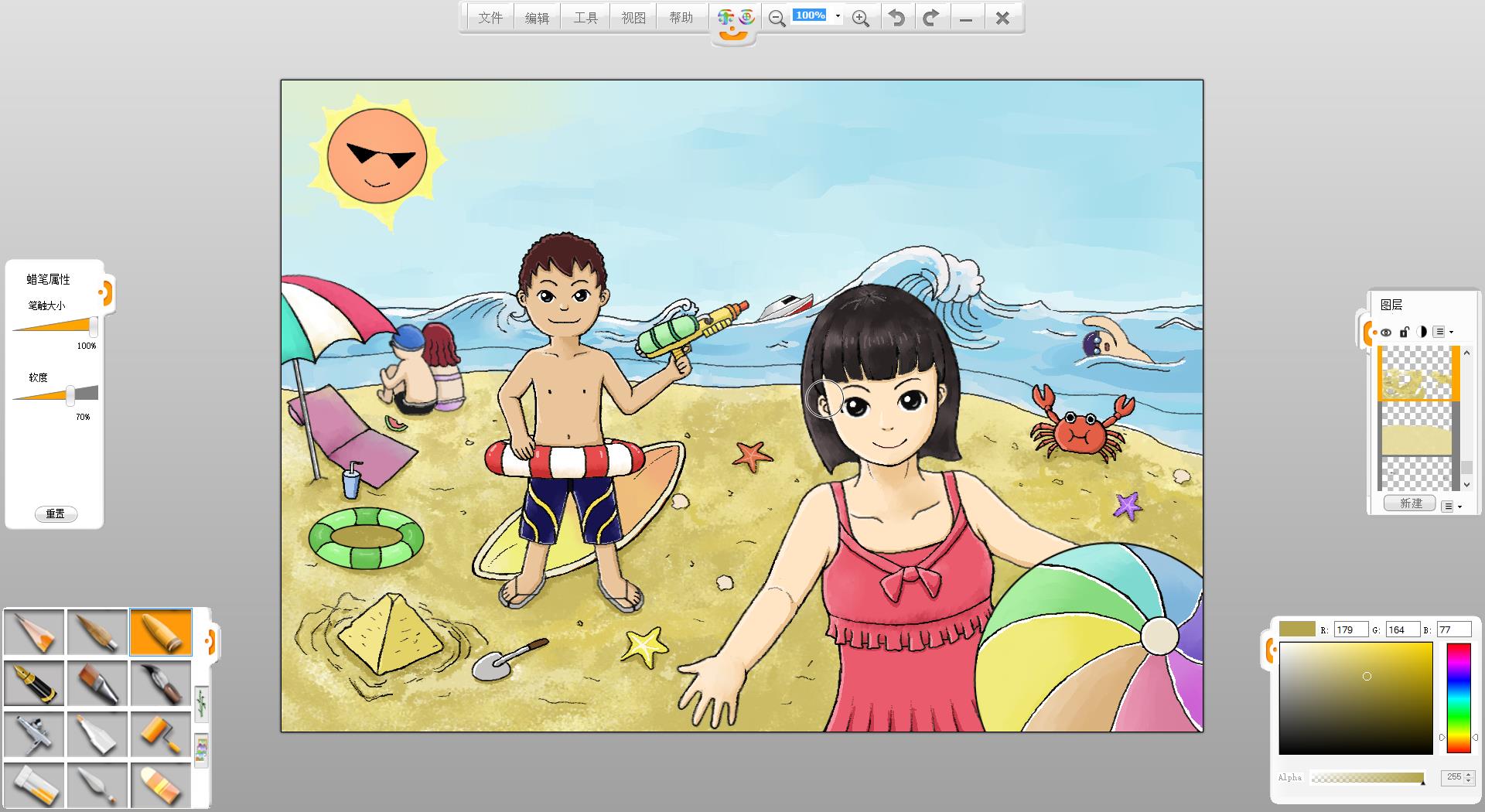 暑假到了,假期準備如何度過呢?去海灘游玩是一個不錯的選擇。現在來嘗試創作一幅“玩轉暑假”的作品吧!