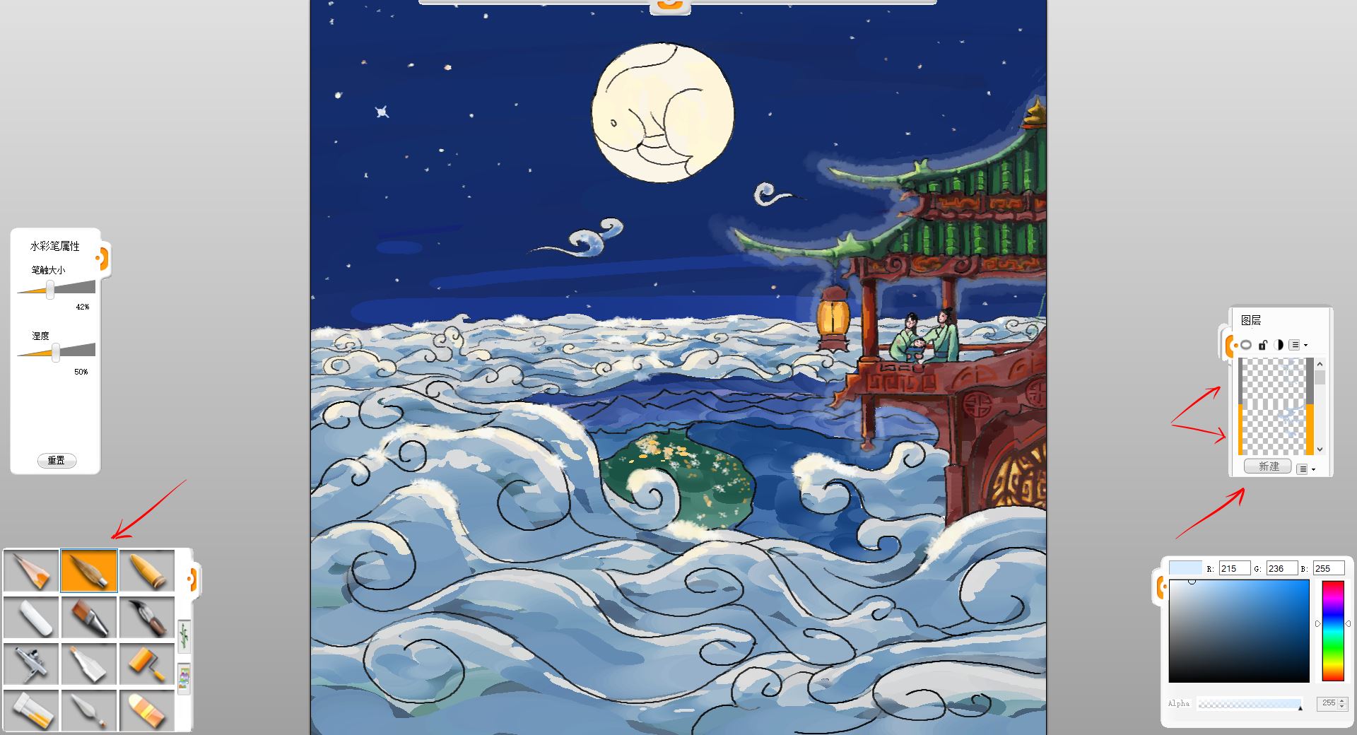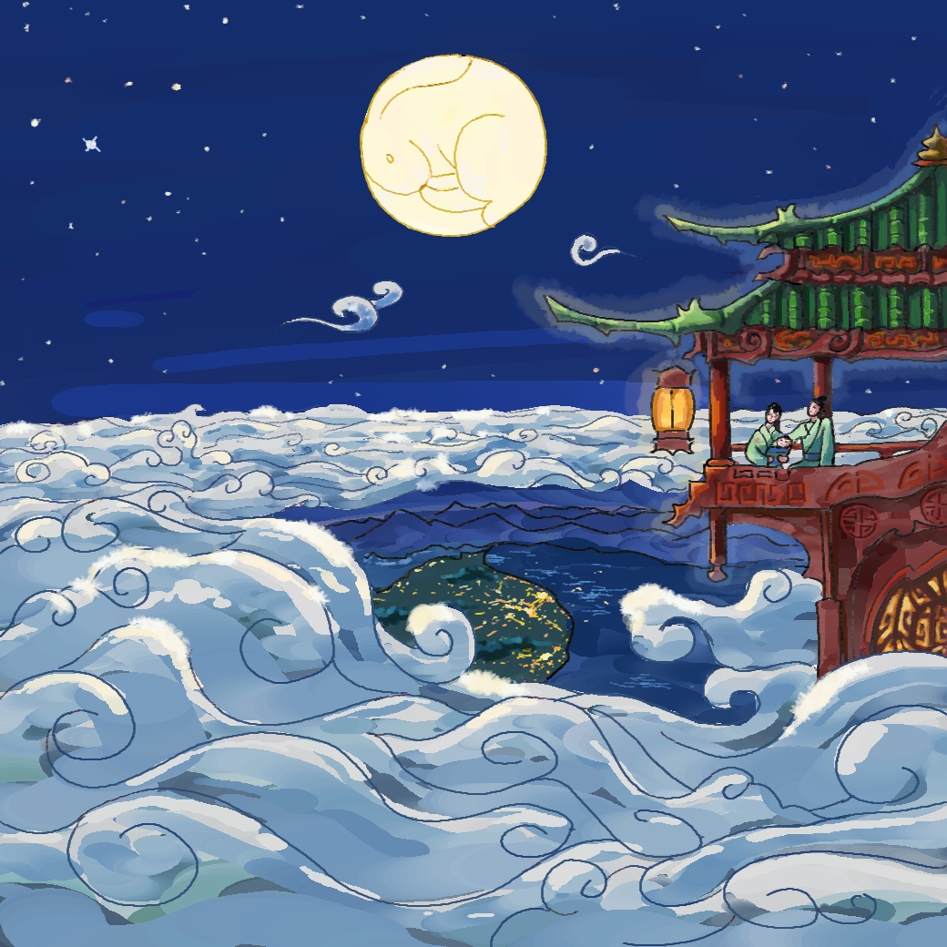 中秋節是中國傳統節日之一,有著悠久的歷史和豐富的詩詞歌賦,現在一起創作一幅神仙也賞月的圖吧!