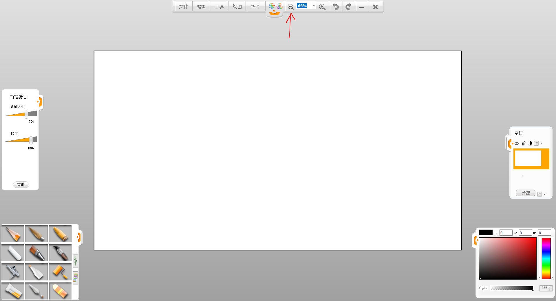 2.使用縮放工具,把畫卷拉遠縮小,方便繪制全局。