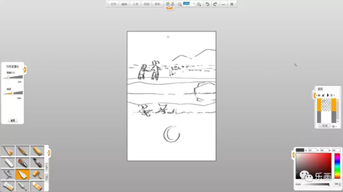 08 接下來刻畫場景,先用馬克筆筆觸刻畫石頭,石頭最深處的縫隙可以用鉛筆筆觸