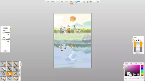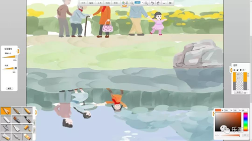 04 接下來用馬克筆筆觸把倒影也鋪上,這樣一個(gè)重陽節(jié)回憶的概念圖就完成了,可以快速幫我們找到整體的感覺