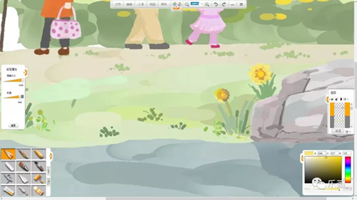 11選中草坪圖層,用馬克筆筆觸將草坪的色調(diào)繪制得更豐富些