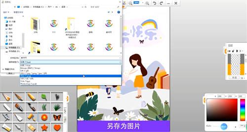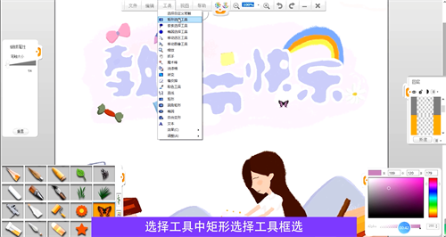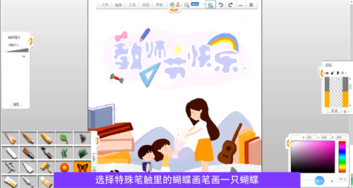 選擇特殊筆觸里的蝴蝶畫筆畫一只蝴蝶,用移動圖像工具進行大小位置的調整。