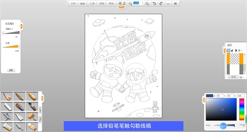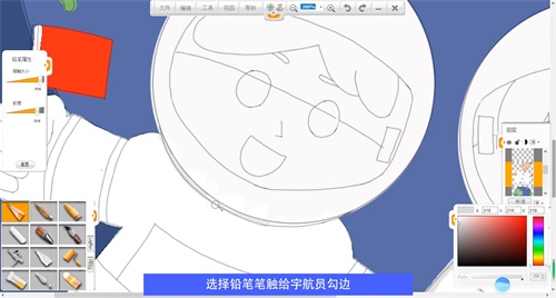選擇鉛筆筆觸給宇航員勾邊