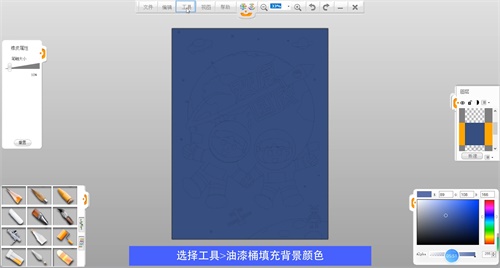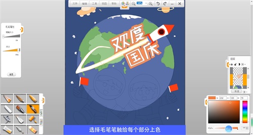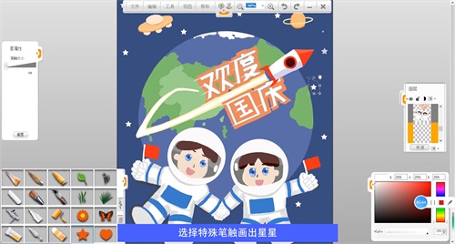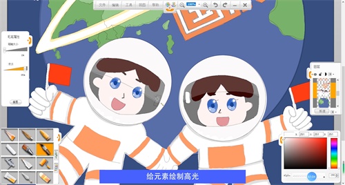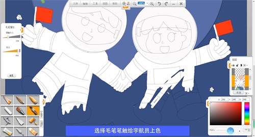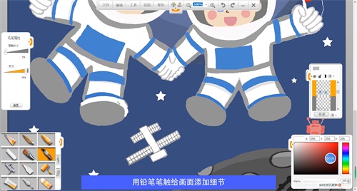 選擇毛筆筆觸給宇航員頭部上色,選擇鉛筆筆觸給機(jī)器人上色