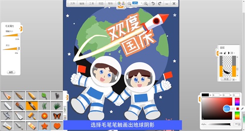 選擇工具>橢圓畫出地球,選擇毛筆筆觸給每個(gè)部分上色