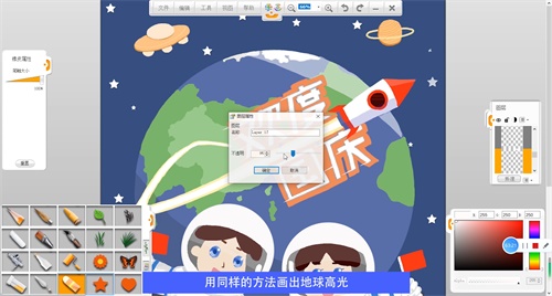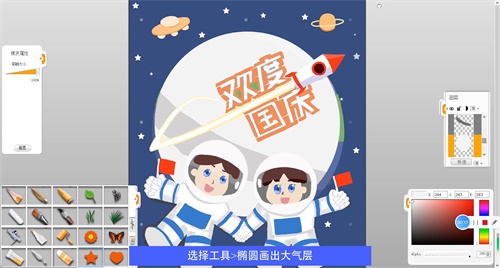 選擇工具>橢圓 畫出宇航員頭盔,選擇毛筆筆觸給宇航員上色
