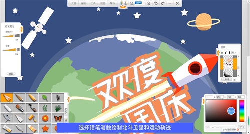 用鉛筆筆觸繪制北斗衛(wèi)星和軌跡