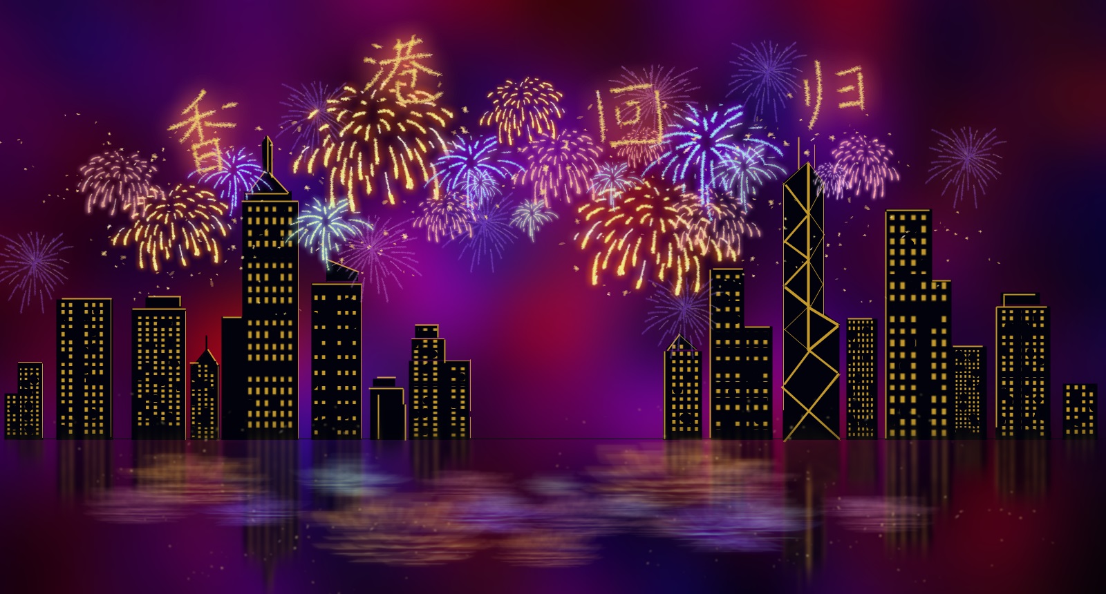 26、用水彩筆筆觸,在夜空中寫上“香港回歸”四個字