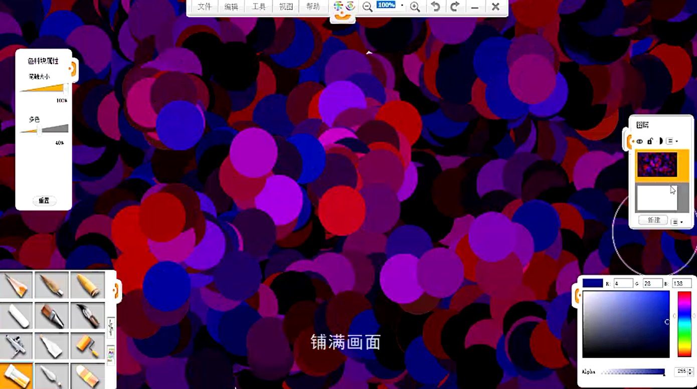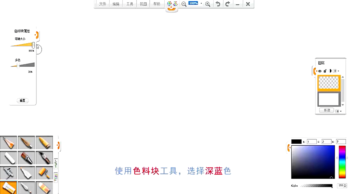 2、選用色料塊筆觸,選擇深藍色