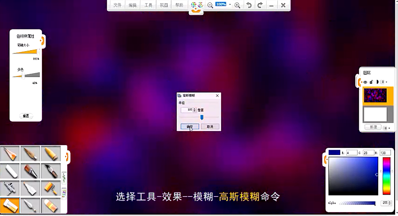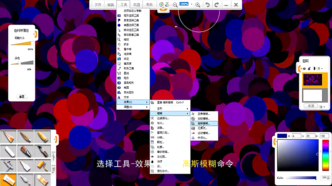 5、針對該圖層,選擇工具-效果-模糊-高斯模糊