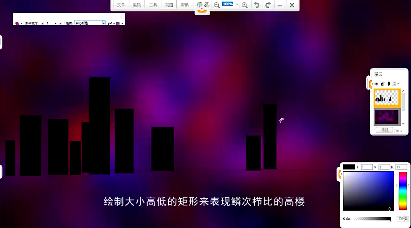 9、繪制大小高低的矩形來表現鱗次櫛比的高樓
