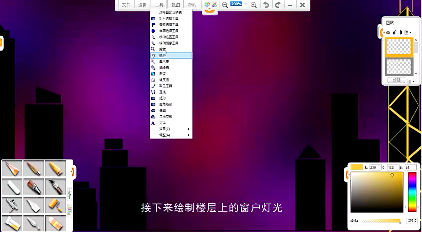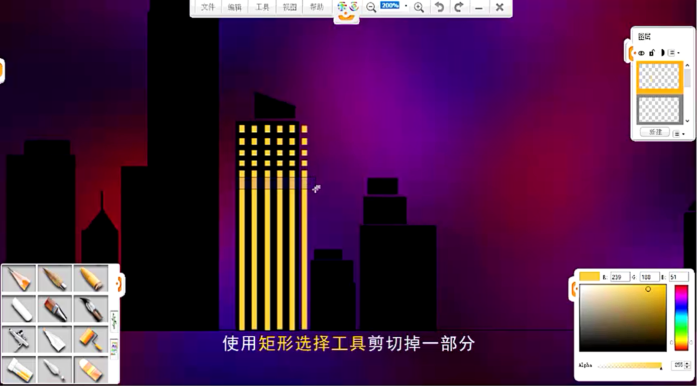 11、接下來,繪制樓層上的窗戶燈光
