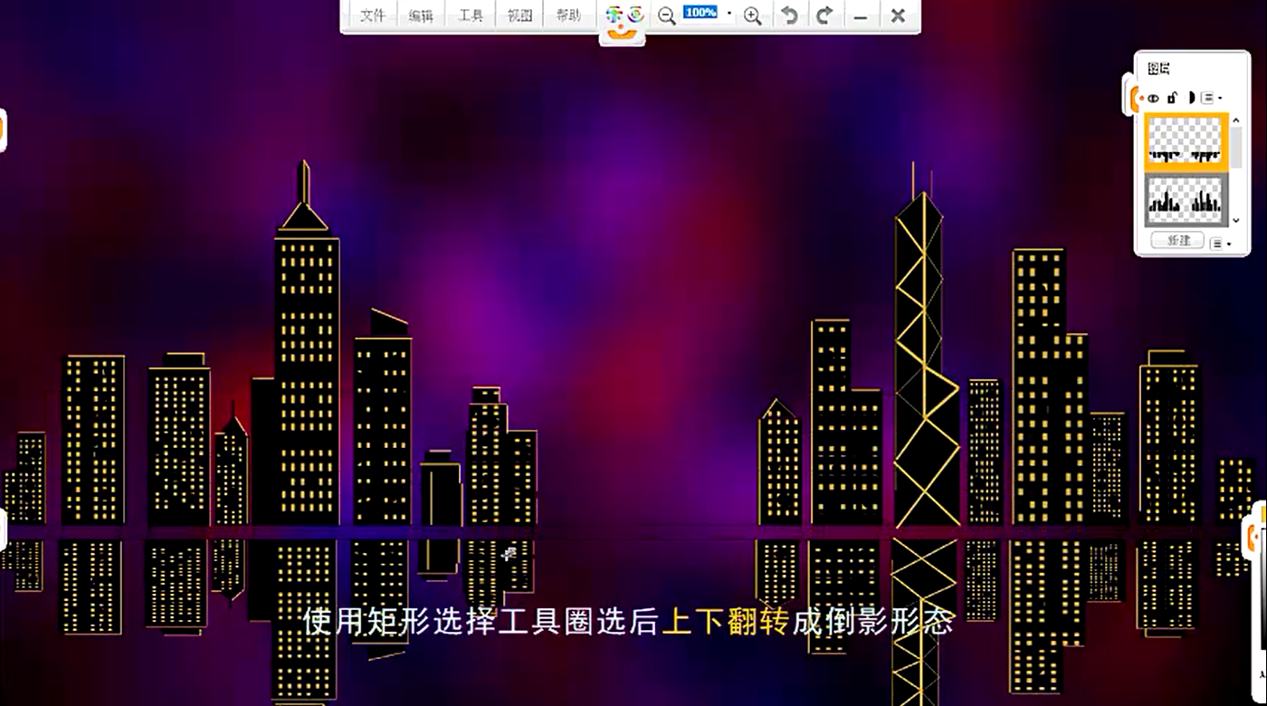 18、使用矩形選擇工具圈選后,上下翻轉,形成倒影效果
