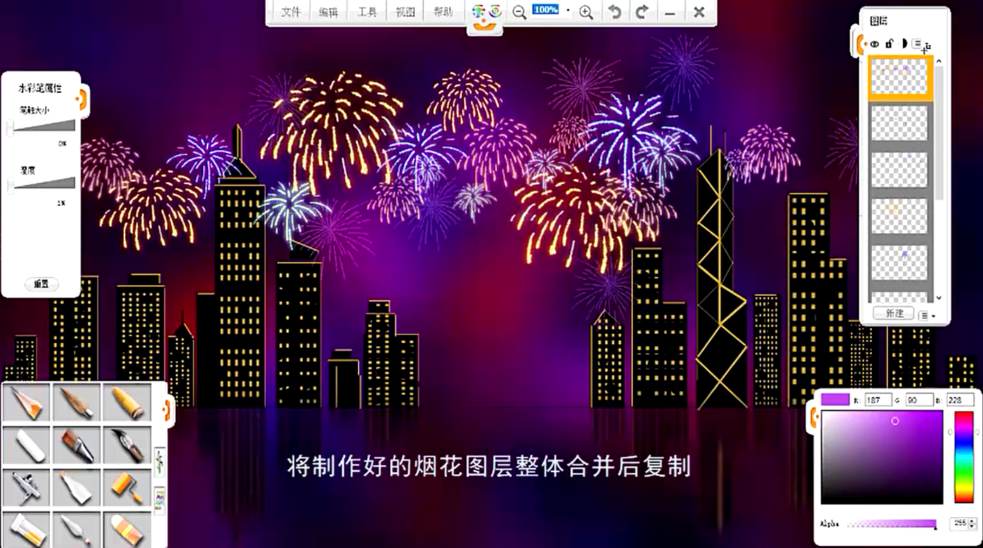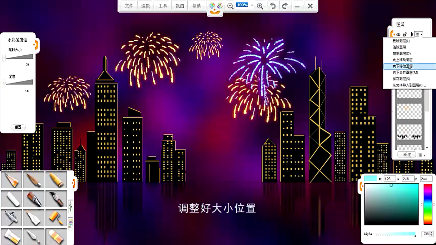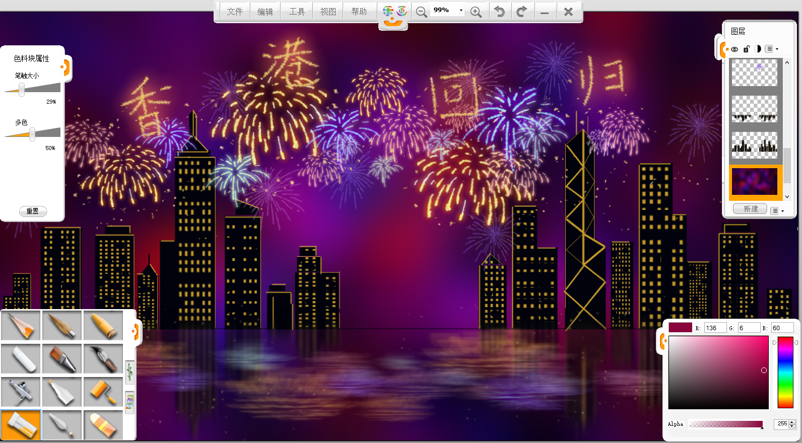下面就使用樂畫繪畫軟件創作一幅慶祝香港回歸祖國25周年的作品《回歸之夜》。