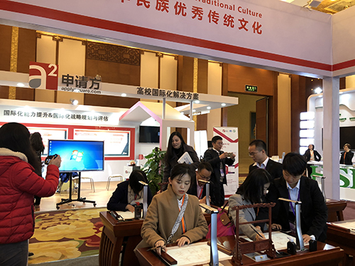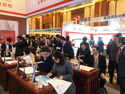2018年12月4日,以“改革創(chuàng)新促發(fā)展,攜手同心創(chuàng)未來(lái)”為主題的第十三屆孔子學(xué)院大會(huì)在成都舉行,來(lái)自154個(gè)國(guó)家和地區(qū)的1500多名代表參加了大會(huì),共話漢語(yǔ)海外教學(xué)和文化交流。廣視通攜自主研發(fā)的智慧書(shū)法教室閃耀亮相,吸引了現(xiàn)場(chǎng)眾多嘉賓駐足體驗(yàn),并受到了現(xiàn)場(chǎng)中外大學(xué)校長(zhǎng)、孔子學(xué)院代表的一致好評(píng)。