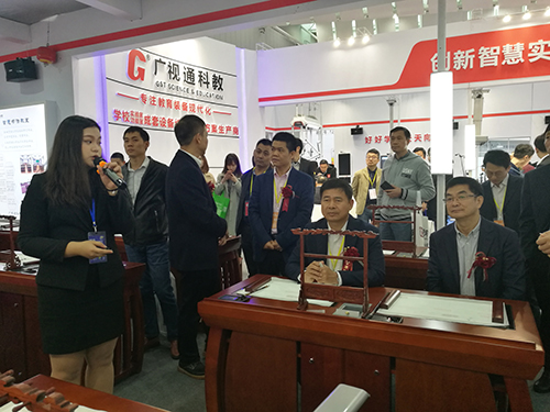 廣視通作為學校教育裝備綜合解決方案生產(chǎn)商與集成商,在展會上亮相便受到了多方的關注。教育部關心下一代工作委員會常務副主任、中國教育裝備行業(yè)協(xié)會會長王富,廣東省教育廳副巡視員邱克楠,廣東省教育裝備中心主任彭紅光,廣東省教育裝備行業(yè)協(xié)會會長陳學機等領導,以及廣東省各地級市教育裝備部門負責人和學校老師代表們、教育裝備界同仁紛紛來到廣視通展位進行參觀,會場摩肩接踵,熱鬧非凡。