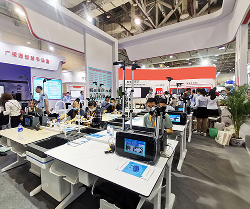 廣視通攜智慧書法教室、實驗教學與操作考評系統(tǒng)、創(chuàng)新智慧實驗室及學校教育裝備整體解決方案等產品亮相,吸引了眾多參加嘉賓駐足體驗,展會現場人頭攢動、精彩紛呈!