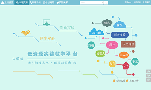,本地資源分兩部分,一個是培養(yǎng)綜合能力的“創(chuàng)新實驗”,設置了無人機、3D打印、陶藝等課程,都是一些科技性與趣味性比較強的課程,旨在提高學生的創(chuàng)新意識和動手能力。另一個是配套實驗教學的“同步實驗”,主要涵蓋物理、化學、生物、通用技術,實現了對教材版本和教學內容的全覆蓋�!皩嶒炍膸臁笔桥c實驗視頻同步的,這便于學生對實驗的理解,同時也提供了一個標準的實驗報告范本。實驗教學系統(tǒng)的“仿真實驗”,可以讓學生在網絡環(huán)境中隨時隨地接觸實驗、操作實驗,既提升了學生對實驗知識的興趣,也為學生以后的實際操作打下堅實的基礎。