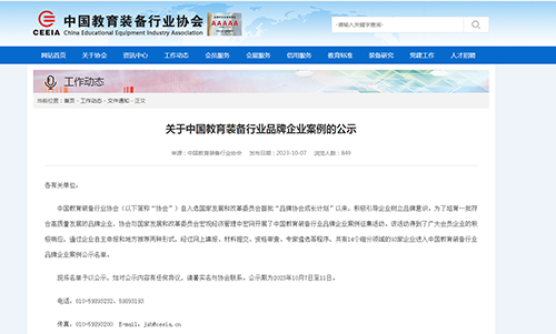 中國教育裝備行業(yè)協(xié)會積極引導企業(yè)樹立品牌意識,為了培育一符合高質(zhì)量發(fā)展的品牌企業(yè),與國家發(fā)展和改革委員會宏觀經(jīng)濟管理中宏網(wǎng)開展了中國教育裝備行業(yè)品牌企業(yè)案例征集活動。