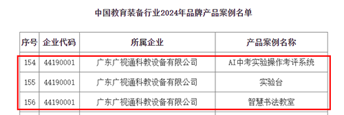 近日,中國教育裝備行業協會公示了中國教育裝備行業2024年品牌產品案例名單,廣視通AI中考實驗操作考評系統、實驗臺、智慧書法教室等三款產品成功入選。