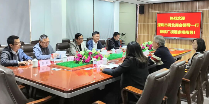 2026年1月30日下午,深圳市湖北商會曾勝學會長攜常務(wù)副會長兼教育聯(lián)合會向祥會長、胡文清副會長、理事毛火球及會員代表陳彪等一行蒞臨廣視通參觀指導。公司董事長陳登貴熱情接待并陪同交流。
