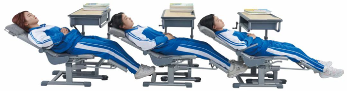 其中,側躺式午休課桌椅是公司的明星產品。這款課桌椅是在國標課桌椅基礎上的創新之作。它巧妙地解決了教室空間有限與學生高質量午休的矛盾,只需簡單地把椅子前移桌下讓位空間,放倒椅子靠背,拉出腳托,就能輕松地在教室原位實現平躺午休。而且椅展長有多種規格,適配不同身高的學生。其課椅座面采用環保pe藤質材料,具有良好的彈性、透氣性和韌性,能對身體進行科學支撐,使用壽命長。在整體結構上,充分強化了安全性和穩定性,保障學生午休安全。此外,午休模式下的課椅后仰角度可達150度,讓學生真正實現舒適午休,遠超市面上部分只有120度或135度后仰的產品。