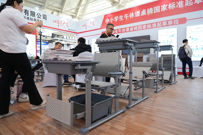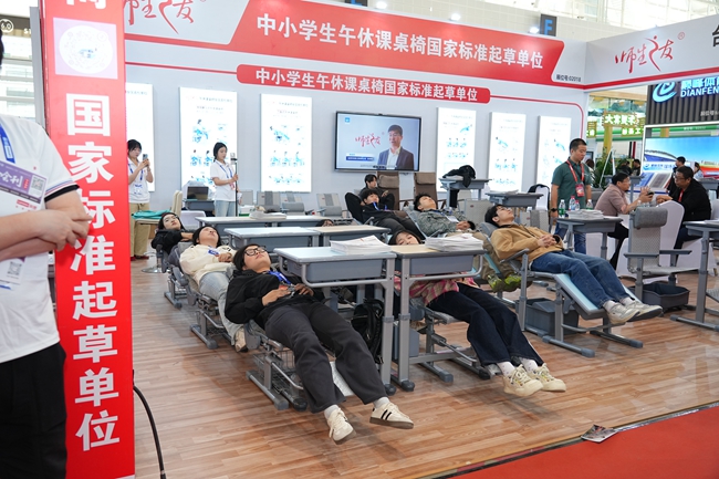 求展工貿深耕教育裝備領域,致力于為學校提供創新教學設施。此次展會,其側躺式午休課桌椅成為焦點。該課桌椅設計精巧,課桌原位不動即可實現午休功能,有效緩解學校午休空間緊張問題,為學生創造良好午休環境,助力提升學習效率,獲得眾多教育工作者與采購人員好評。