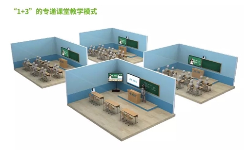 在大別山深處,安徽省政府確定的試點(diǎn)模式“1+3專遞課堂”正在進(jìn)行。即一個(gè)沒(méi)有學(xué)生的主講課室,帶三個(gè)聽課教室。主講端選擇城區(qū)的名校老師代課,并專門針對(duì)遠(yuǎn)程模式和基礎(chǔ)學(xué)生設(shè)計(jì)課程內(nèi)容(區(qū)別于此前的遠(yuǎn)程教學(xué)直播);聽課端三個(gè)課室學(xué)生人數(shù)加起來(lái)亦基本等于一個(gè)正常課室學(xué)生人數(shù),可以形成合理的教師對(duì)學(xué)生學(xué)習(xí)進(jìn)度的掌控。