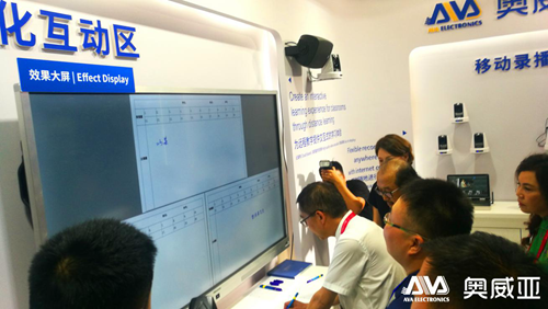 為了讓中外來賓更好理解互動云應用,奧威亞現場展示了一節精彩的的藝術教育遠程互動課堂——在交流周現場,奧威亞主講端介紹了中國書法的發展歷史,讓遠程聽課端的同學基于紙筆交互技術完成隨堂測試,主講端講師可以即時批閱檢驗。如此高度還原教學場景的互動課,吸引了貴州省教育廳分管副廳長黃健前來體驗。