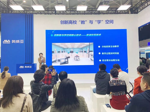 推進教育現代化創新發展”,奧威亞在本屆展會上也為大家帶來了:互動云、智慧課堂+AI、職業技能實訓、4K錄播、無線便攜錄播、微課制作等教育解決方案,推動創新智慧課堂建設開展。