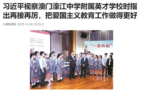2019年12月,正值澳門回歸20載,國(guó)家領(lǐng)導(dǎo)人成批帶隊(duì)深入澳門地區(qū),視察當(dāng)?shù)囟嗨^(qū),其中濠江中學(xué)更是重點(diǎn)校區(qū)之一。
