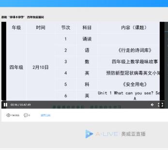 邵陽市洞口縣教育局利用奧威亞部署平臺匯聚優質教學資源組織一年級到高三學生,開展多種形式的教學活動。堅持國家課程學習與疫情防控知識學習相結合,特別注重疫情防護知識普及,加強生命教育、公共安全教育和心理健康教育,添加唱國歌等愛國情懷教育。自2月6日-27日,共21天,奧威亞助力邵陽地區開展180場直播,受益學生超過15萬人,2月26日,單日直播流量突破500萬人次。