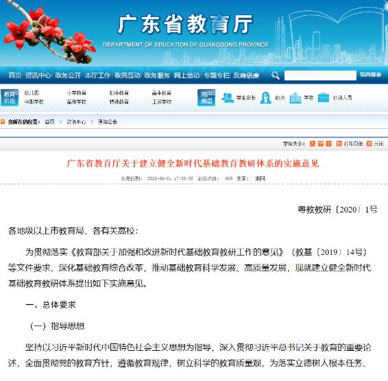 2020年6月1日,《廣東省教育廳關(guān)于建立健全新時代基礎(chǔ)教育教研體系的實(shí)施意見》對外公布,明確表示將用3-5年時間,理順教研管理體制,完善教研工作體系,煥發(fā)教研機(jī)構(gòu)生機(jī)活力,打造高素質(zhì)教研隊(duì)伍,創(chuàng)新教研機(jī)制,落實(shí)教研任務(wù),強(qiáng)化教研保障,提高教研水平,建成富有廣東特色、國內(nèi)領(lǐng)先、上下聯(lián)動、橫向貫通的新時代教研體系。