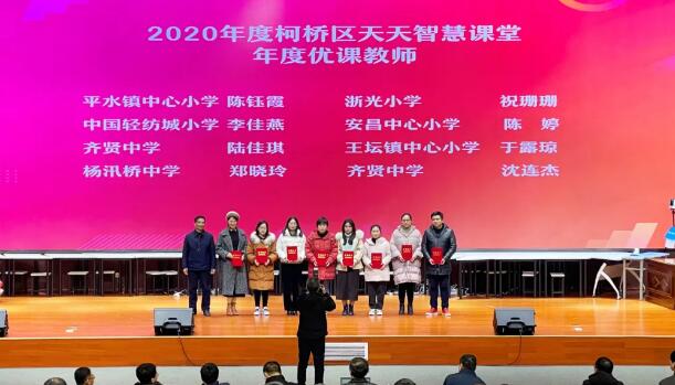 大會還對2020年柯橋區天天智慧課堂年度優課教師、十佳優質課教師、年度冠亞季軍和柯橋區智慧教育高級研修班(第二期)優秀學員進行了頒獎,鼓勵年輕教師積極參與天天智慧課堂優質課程評比活動中來,在信息化教學中不斷提升專業水平。