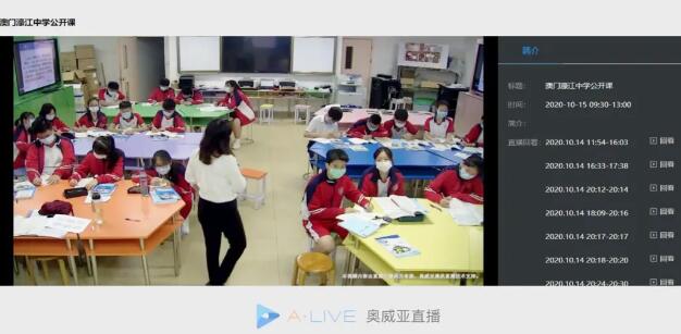 2012年以來,濠江中學先后多次與奧威亞開展深度合作,在學校部署了錄播教室、智慧互動教室、虛擬微課制作室、校園電視臺、視頻應用管理平臺等一系列應用。通過錄播教室錄制的優質教學視頻,上傳至視頻應用管理平臺,實現優質教育資源的共享。此外,在奧威亞互動云支持下,濠江中學還與香港元朗商會中學、珠海九洲中學等學校教師開展線上磨課、備課、專題研討等教研活動,促進粵港澳三地教師共同成長。2020年10月,在奧威亞云直播支持下,濠江中學還開展了一場線上公開課,展示了智慧教學的新成果。
