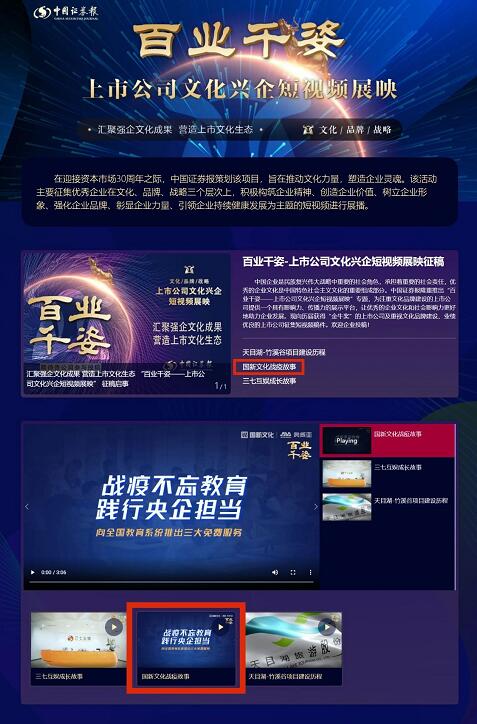 中國企業是民族復興偉大戰略中重要的社會角色,承擔著重要的社會責任,優秀的企業文化是中國特色社會主義文化的重要組成部分。在迎接資本市場30周年之際,中國證券報隆重推出“百業千姿——上市公司文化興企短視頻展映”專題,為上市公司提供一個具有影響力、傳播力的平臺。國新文化會同所屬企業奧威亞拍攝推薦的《國新文化戰疫故事》,近日在該專題刊播。