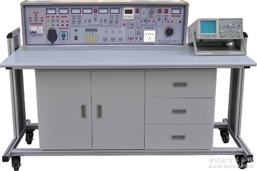該設備是電工、電子、電力拖動三門課程綜合實驗設備,可完成電工學、電工原理、電子技術、電力拖動控制線路等課程近400項實驗。所有的元器件均已裝在元件盒上(內),元件盒盒體透明,盒內元件一目了然,非常直觀。元件盒蓋印有永不褪色的元件符號,符號線條美觀、清晰,盒蓋與盒體的結構采用較科學的壓卡式結構,維修拆裝非常方便。實驗臺桌中央配置通用電路板(注塑而成)。尺寸為90X35cm,表面均布有九孔一組互相通電插孔。元件盒在其上拼插成實驗電路,具有使用方便、靈活、插拔自如等特點。所有帶電部位均隱蔽,實驗安全可靠,局部跨線由插塊來實現,連成的實驗電路直觀、清楚。元器件放置在實驗桌下面左右抽屜內,大大提高了管理水平,規劃化程度,大大減輕了教師實驗準備工作。三套設備合為一體,有效地提高實驗室的利用率和經濟效益。