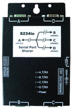 S234io盒是一個擁有RS232界面主串口及三個地電位隔離RS485界面的從串口之串口分配器。當我們把數據集中器的RS232串口與S234io盒的主串口連接后,三個各自獨立且地電位隔離的RS485從串口就可以各自接到自己的RS485水表。當數據集中器發出詢問封包在RS232串口上,則這個詢問封包會經由S234io盒轉發到全部的RS485網絡連線水表上。于是被指定的水表就會回答計量資料封包而回到數據集中器。由于RS485網絡連線水表所回答的計量資料封包只會經由S234io盒回傳到RS232主串口再到數據集中器,而不會像傳統RS485橋接器方式到處轉發到RS485網絡的每一個地點。所以采用S234io盒信號的追蹤相當容易,只要出現數據傳輸異常則鎖定問題相當容易。