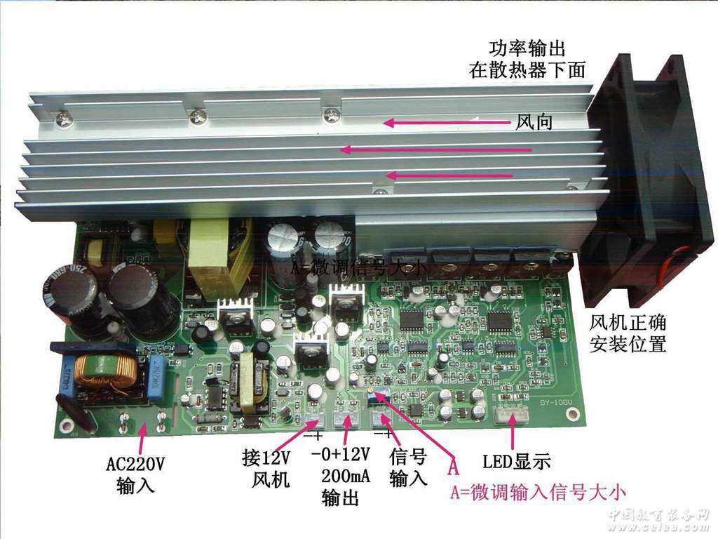 輸入、輸出接口: 工作狀態LED顯示接口 用于顯示工作、信號、自動保護狀態指示。 12V200mA風機電源輸出 用于外接散熱風機 + - 12V 200mA輸出 用于您或許需要配套的前級板電源. 智能風機控制: 當散熱器溫度上升到50度時,風機開始工作。低于50度時,風機停止工作。