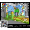 藝云彩繪公司是國內唯一一家專業服務于幼教機構的裝飾彩繪公司。為全國各地大中型幼教機構提供專業而高水平的室內外墻面彩繪、裝飾裝修、動感浮雕、地墊(室外整體塑膠多功能地墊、軟體塑膠兒童旱冰場地面、室內彩繪塑膠地墊)壁掛式智力操作板、等所有幼教高端硬件配套設施的整體規劃設計與施工的一條龍服務!本公司采用先進彩繪機器結合純手工噴繪的手法進行墻面繪制,滿足了園方的不同要求,繪制效果色彩飽滿,形象生動,立體感強,不受空間限制,而且施工迅速,不影響正常上課。
