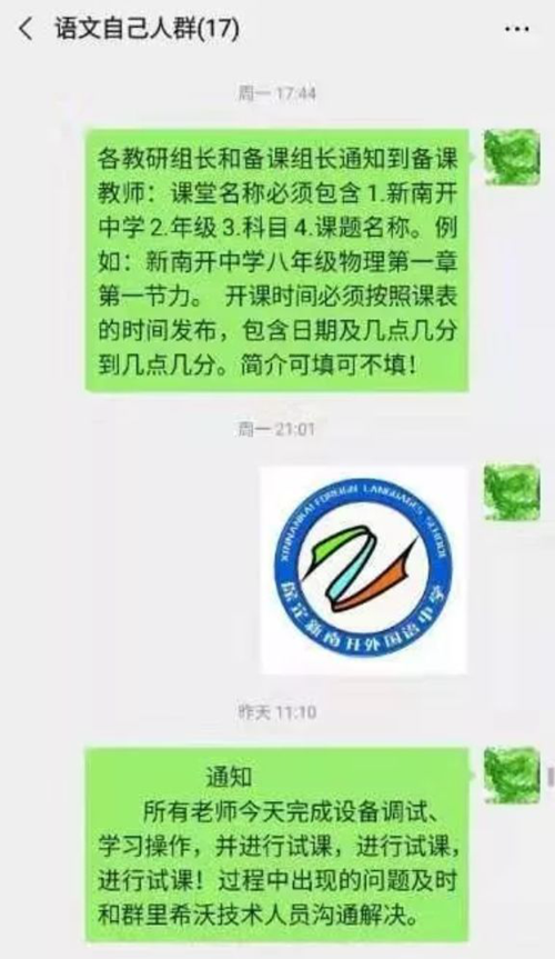 新南開中學于2月10日開啟“云課堂”在線直播授課。學校迅速制定了線上教學實施方案,教學管理小組由教務處牽頭、年級組長組織安排課程。