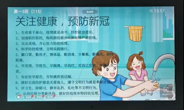 通過班牌,該校實現了學校信息高效發布、人臉識別考勤簽到、防疫知識快捷宣傳、優秀試卷展示、學生可與家長隔空對話等目標。