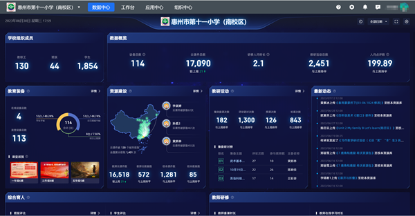 此外,學校還將線上化研修訓練營等教研活動專欄,供校內研討資料留檔備份。截止日前,學校已累計教師課件1.7萬余份,共享共建優質校本資源近1500份。所有數據變化均由希沃魔方·數字基座數據中心看板清晰呈現。